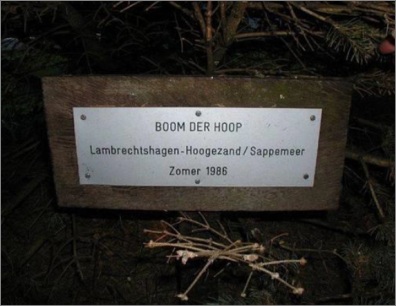 Bij de kerk staat de BOOM DER HOOP. Deze boom kreeg Hoogezand in de beginjaren als teken van verbondenheid en hoop met elkaar.