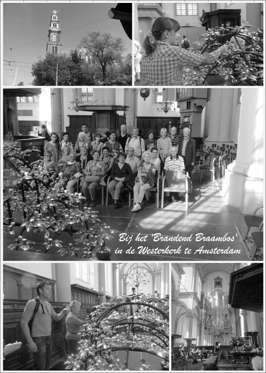 Op 3 oktober, de ‘Tag der Deutschen Einheit’, kwamen onze Neubrandenburgers naar Nijverdal om met heel onze gemeente het jubileum te vieren van onze vriendschap. Onze verbondenheid met de Michaelsgemeinde is iets is van ons allemaal. Dat is niet zo vanzelfsprekend. Van de Landelijke Werkgroep Gemeentecontacten hoorden we dat veel partnerschappen zijn verwaterd of op een laag pitje gezet. Echt contact wordt moeilijk, zo niet onmogelijk, als je elkaar zelden meer ziet. Daarom is het belangrijk dat we elkaar twee keer per jaar blijven ontmoeten rond een Bijbels thema. Deze keer was dat het leven van de eerste gemeente (Handelingen 4). Ds. Rabe gaf een korte uitleg over de tijd waarin dit geschreven werd. Men verwachtte namelijk op korte termijn de wederkomst van Christus. Wat hebben we eigenlijk nodig om te kunnen leven? Gaan we uit van ‘Dein ist mein’ of van het omgekeerde? Geen eenvoudige vragen. Ook Neubrandenburg kent ‘die Tafel’ (een soort voedselbank). We kennen de ‘Leviet uit Cyprus’ als degene die het aandurfde om de gevreesde christenvervolger Paulus (die pretendeerde volgeling van Christus te zijn geworden) op te zoeken. De naam Barnabas betekent: ‘Der anderen Mut macht’. Hoe ging dat elkaar bemoedigen vroeger, in de DDR-tijd, en nu? En wat geeft ons moed voor de toekomst? We willen gezamenlijk, over grenzen heen, na blijven denken over onze opdracht als individuen en gemeenteleden. De ‘Gute Nachricht’ (Blijde Boodschap) is de bron van onze jarenlange verbondenheid. Zaterdag zijn we naar Amsterdam gereisd. We hadden er prachtig weer bij. Om een uur was er een orgelconcert in de Westerkerk. Na afloop verzamelde de hele groep zich daar bij ‘Het Brandend Braambos’ (zie fotocollage). ‘Ik zal er zijn’ krijgt Mozes te horen als hij naar Gods naam vraagt. Die Naam is een belofte voor alle mensen, speciaal ook voor ‘Abrahams kinderen’, Joden en Moslims. Het beeldje van Anne Frank staat vlak bij de Westerkerk. Zelfs onze jongste gasten kennen haar dagboek. Er stonden deze keer geen lange rijen. Het museum was gesloten vanwege ‘Grote Verzoendag’. Verzoening, vrede, gerechtigheid… is dat mogelijk? Het was al donker toen we weer in Nijverdal aankwamen. Achter het verlichte kruis van de Sint Antoniuskerk was de volle maan te zien. Een sfeervol slot van een mooie dag. Aan de feestelijke zondagse jubileumdienst werkte ook Het Christelijk Zangkoor Nijverdal mee. Vooral het lied ‘Gib Frieden Herr, gib Frieden’ vonden onze gasten indrukwekkend.