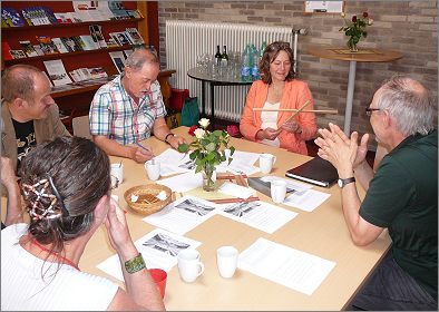 Op zaterdagmorgen hebben we in twee gemengde groepen (Duits/ Nederlands) een soort Lagerhuis gespeeld. Er moesten stellingen verdedigd worden, waarbij we afwisselend voor of tegen een stelling moesten zijn en proberen de anderen van jouw gelijk te overtuigen. Dat ging over de positie van de kerk in een multiculturele